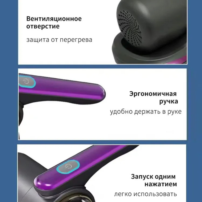 Высокоэффективный многофункциональный пылесос для: кровати, дивана, постельного белья и подушек. Предназначен для удаления грязи, волос, шерсти, пылевого клеща и стерилизации поверхности мебели.